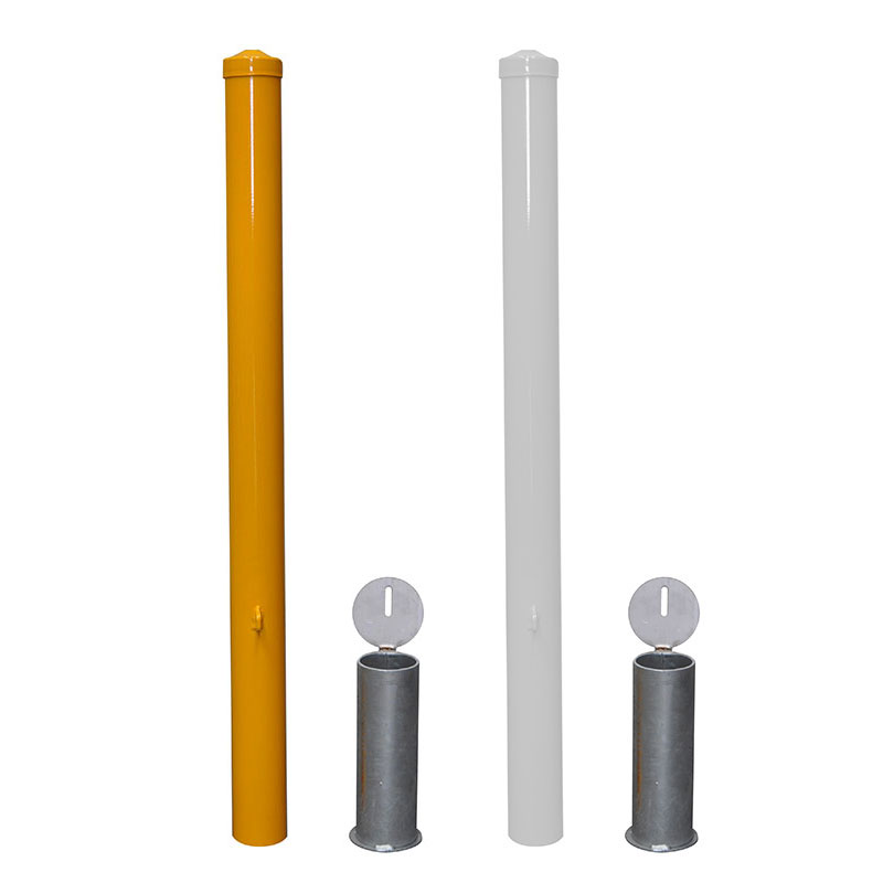 Lockable bollards are a great efficant way to protect your assets and the public. The lockable bollard comes with a galvanised sleeve which has a hinged lid. When the bollard is in the sleeve it can be locked with the lock of your choice. When the bollard is removed, the lid can be flipped down and driven over allowing great access. With the option of 140mm diameter or 90mm diameter, safety yellow, white or custom colour and various differed caps the lockable bollard is a great customisable ergonmic system.